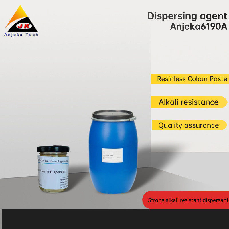 Το Anjeka6190A είναι ένα πολυμερές διασκορπιστικό υψηλού μοριακού βάρους, το οποίο έχει σχεδιαστεί ως τυποποιημένη πρόσθετη ύλη για συμπυκνώματα χρωστικών χωρίς ρητίνη.και συγκολλητικά- ειδικά παρασκευασμένα για τη μεταλλική επεξεργασία ανόργανων χρωστικών όπως διοξείδιο του τιτανίου, υλικά ματ, ανθρακικό ασβέστιο κλπ.παρουσιάζει εξαιρετικές ιδιότητες μείωσης της ιξώδους και εξαιρετική αντοχή στα αλκαλικά.
