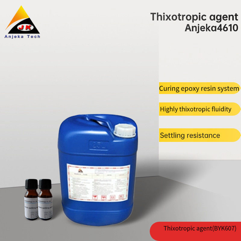 Το Anjeka 4610 είναι μια υγρή ρεολογική πρόσθετη ύλη κατάλληλη για επικάλυψη με διαλύτες και χωρίς διαλύτες καθώς και για συστήματα επικάλυψης σε θερμοκρασία δωματίου με επωξική ρητίνη.Η πρόσθετη ύλη παράγει εξαιρετικά θικσοτροπική ρευστότητα για τη βελτίωση της αντοχής σε κούνημα και της αντοχής στην καθίζησηΤο πρόσθετο μπορεί να προστεθεί αργότερα.